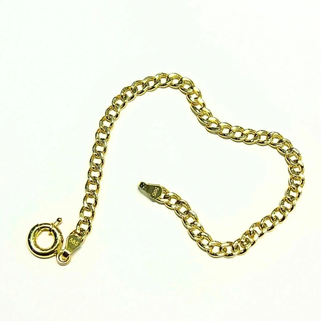Zarif yapısı ve altının sıcak tonları ile her tarza uyum sağlayan bu bileklik, hem sade hem de şık bir stil arayanlar için ideal bir seçenektir. 14 Ayar Altın Zincir Bileklik ile zarafetinizi yansıtın!