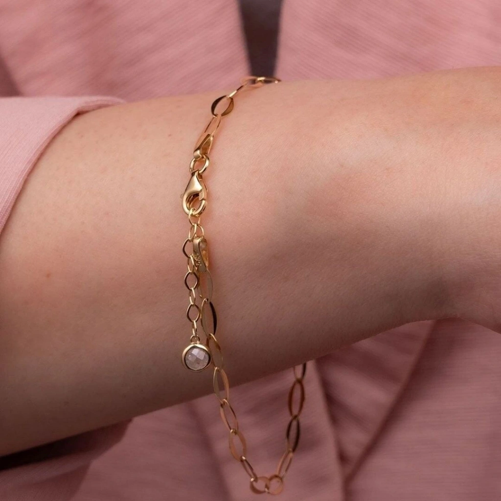 İnce ve zarif duruşuyla bileğinizde estetik bir görünüm sağlayan bu bileklik, hem tek başına hem de diğer bilekliklerle kombinlenerek kullanılabilir. Günlük stilinize sofistike bir dokunuş katmak için ideal olan bu model, zamansız tasarımıyla her tarza uyum sağlar.
