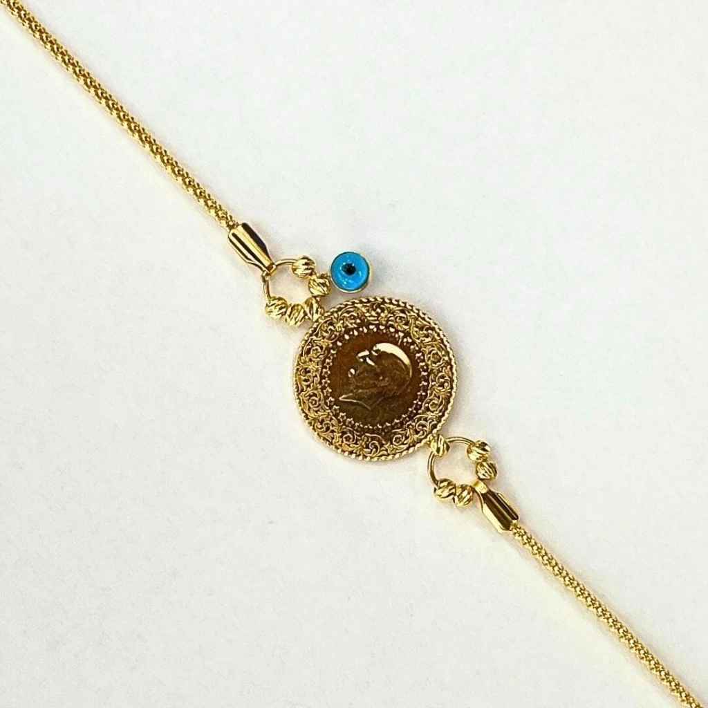 14 Ayar Çeyrekli Bileklik , klasik ve anlamlı bir takı arayanlar için ideal birseçenektir. Bu bileklik, hem geleneksel hem de modern kombinlerle uyum sağlar.14 ayar altın ve çeyrek altının birleşimi, bileziğin hem estetik hem de maddideğerini artırır. Sevdiklerinize özel günlerde hediye edilebilecek anlamlı vedeğerli bir takıdır.