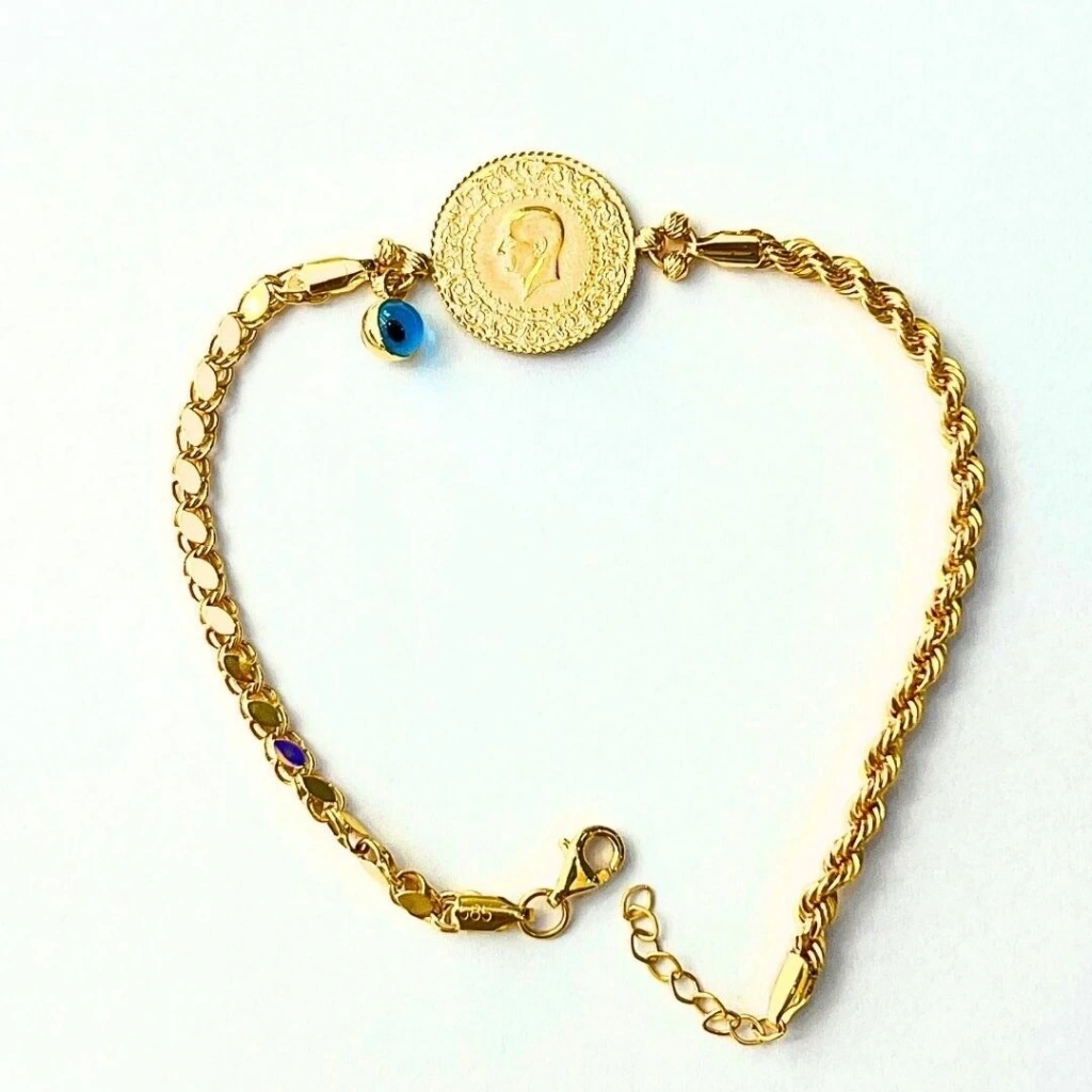 Tasarım: Pullu halat örgü ve çeyrek altınlı bileklik