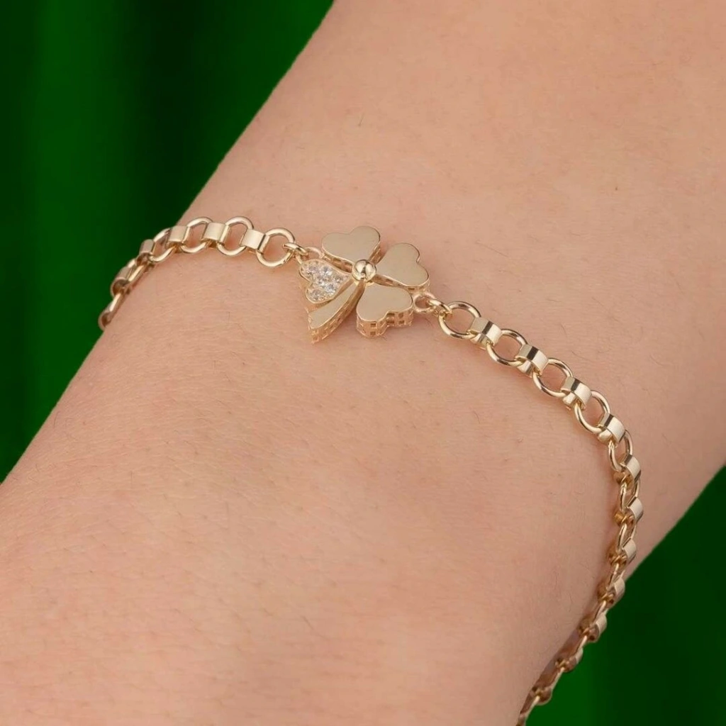Şansın ve zarafetin buluştuğu 14 Ayar Yonca Altın Bileklik ile stilinizi tamamlayın!