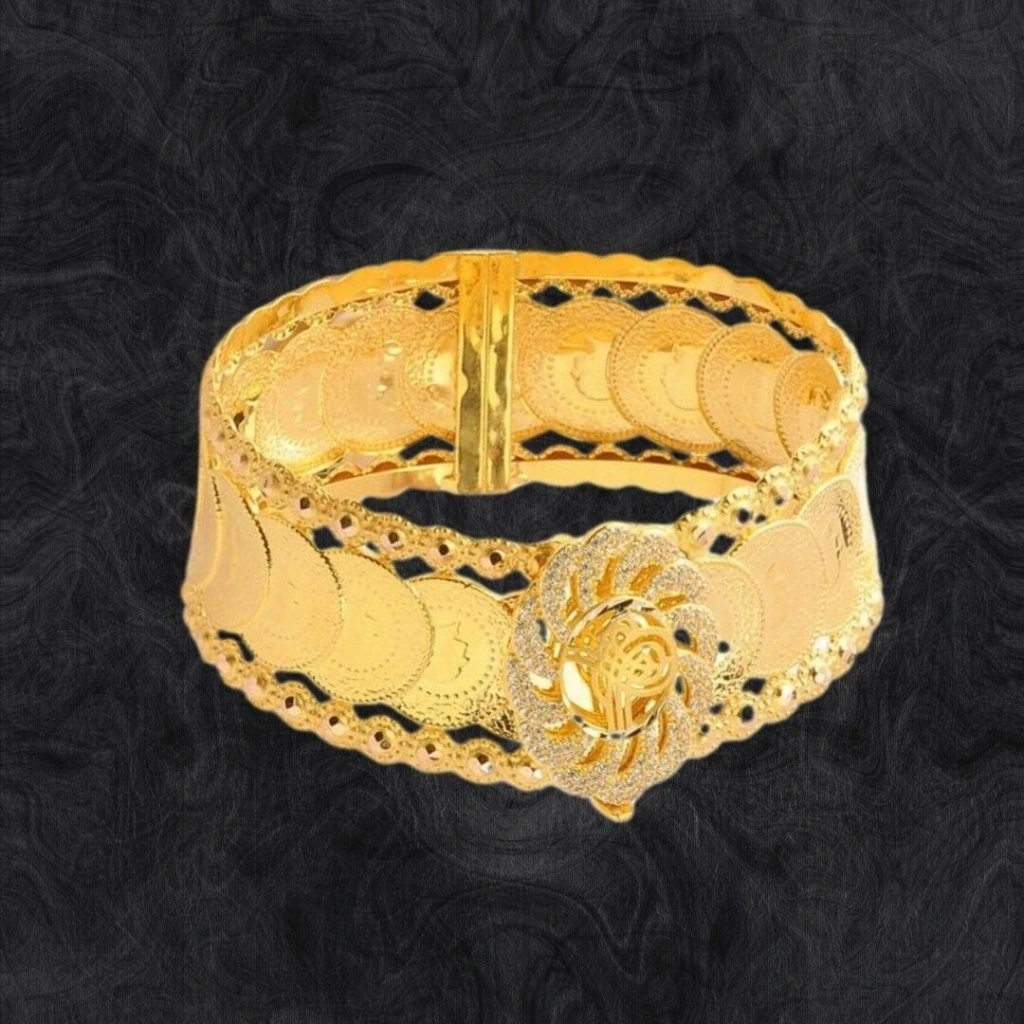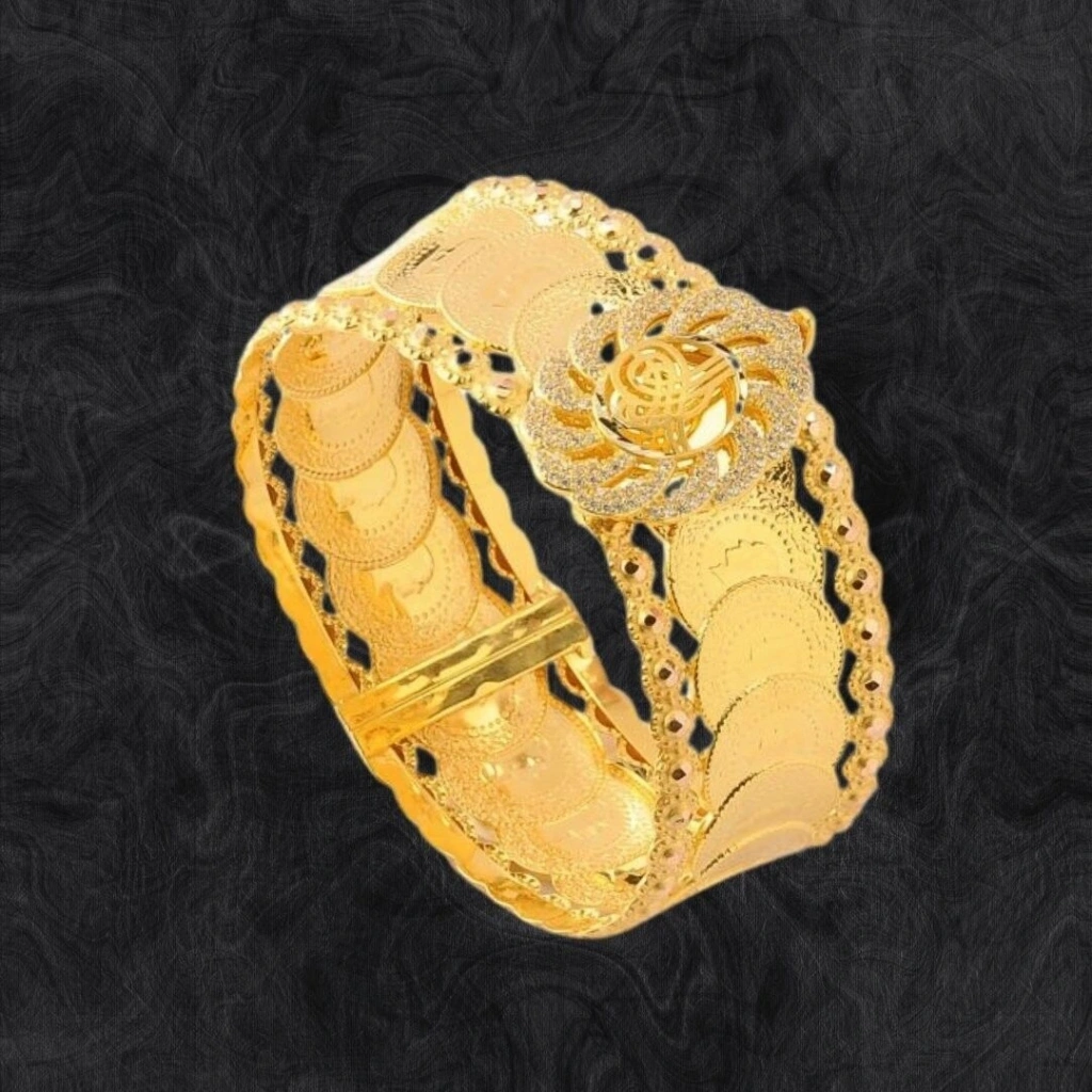 Bu 8 Ayar AltınÇeyrekli Tuğralı Kelepçe, Evla Kuyumculuk tarafından özenle tasarlanmıştır . Bir mücevherat ürünüdür. Yüksek kalitelimalzemeler kullanılarak yapılmıştır . Benzersiz tasarımıyla dikkat çekmektedir. Bu kelepçe, 8 ayar altın kullanılaraküretilmiştir ve toplamda 24,20 gram ağırlığındadır. Üzerindeki tuğra detayları,Osmanlı İmparatorluğu'nun sembolik bir ifadesini taşır ve kelepçeye tarihi birruh katmaktadır. Altın çeyreklerle süslenmiş olan bu kelepçe, değerli birgörünüm sunar ve göz alıcı bir etki yaratır. Kelepçe şeklindeki tasarımı modernve zarif bir görünüm sunar.