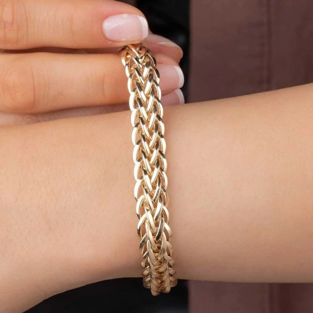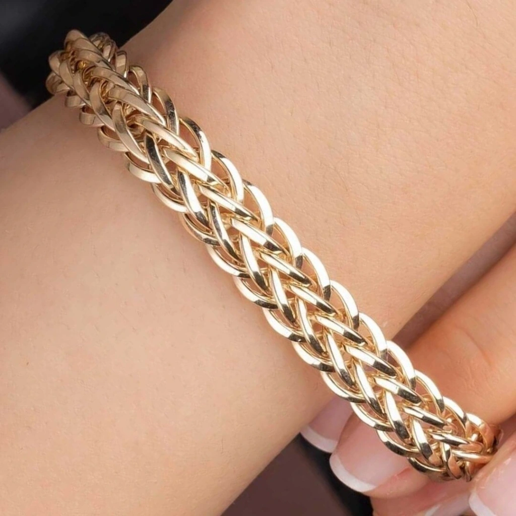 Evla Kuyumculuk'un göz alıcı koleksiyonunda yer alan 8 Ayar Altın Hallow Bileklik,zarafetinizi vurgulayan bir şıklık sunuyor. Bu özel tasarım, 9,70 gram ağırlığıyla gösterişli ve dikkat çekicidir. İnce işçilik detayları ve hafif yapısıyla bileğinize konfor sağlar. Kaliteli malzeme ve ustalıkla işlenen bu bileklik, her anınıza zarafet katmak için mükemmel bir seçenektir. Evla Kuyumculuk'un imzasını taşıyan bu bileklik, özel günlerde veya günlük kullanımda tarzınızı tamamlayacak bir aksesuardır.
