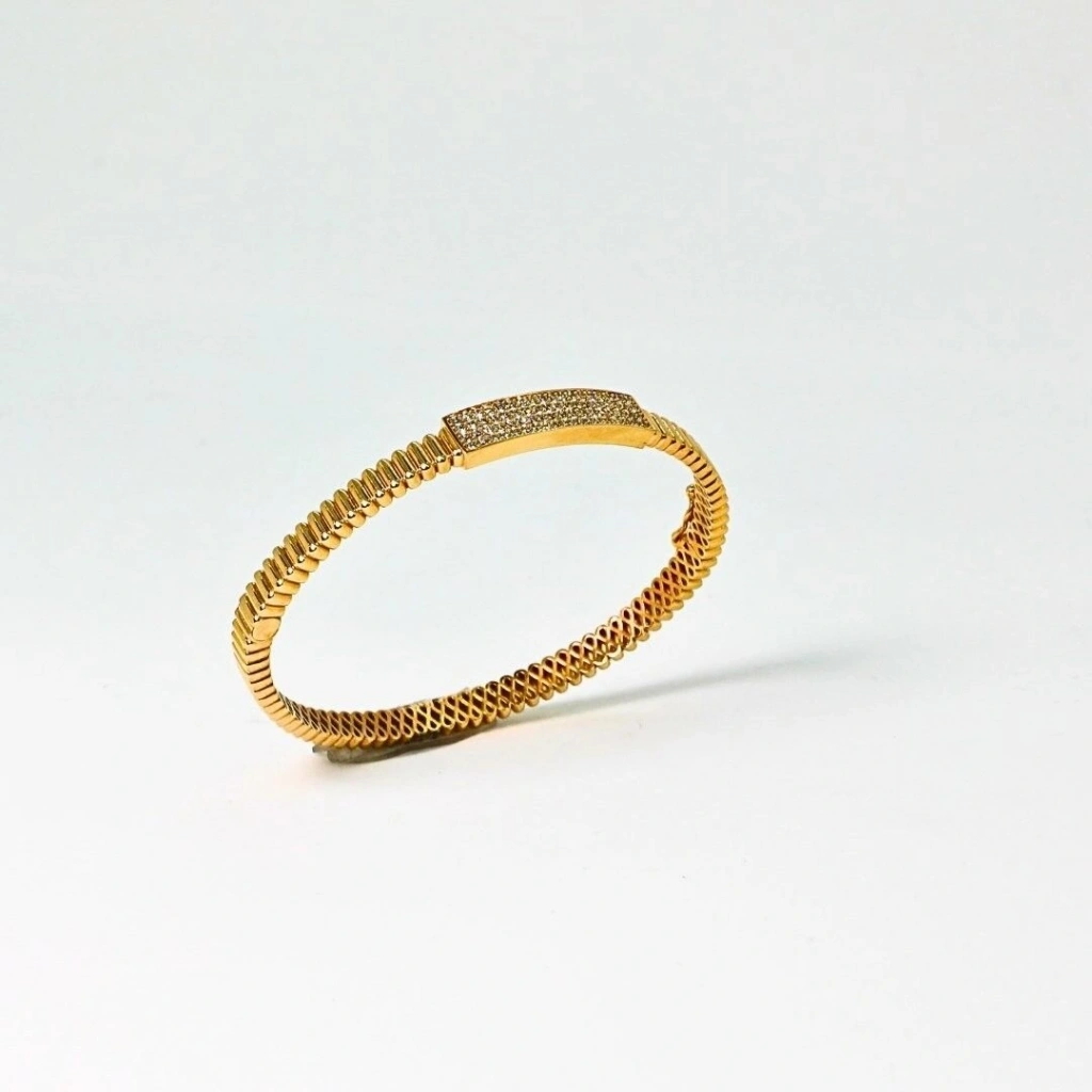 8 ayar altının doğal ışıltısını yansıtan bu kelepçe bilezik, zarif ve şık tasarımıyla her kombinle uyumludur .