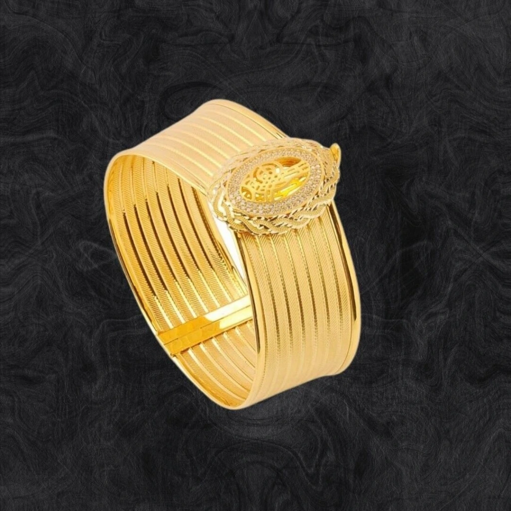 Bu 8 Ayar Altın Trabzon Hasır Kelepçe, Evla Kuyumculuk tarafından özenle tasarlanmıştır . Bir mücevherat ürünüdür. Kaliteli malzemeler kullanılarak yapılmış ve benzersiz tasarımıyla dikkat çekmektedir. Bu kelepçe, 8 ayar altın kullanılarak üretilmiştir ve toplamda 20,25 gram ağırlığındadır. Trabzon hasırı deseniyle süslenmiştir, bu da ona eşsiz bir dokunuş ve karakteristik bir görünüm kazandırır. Kelepçe şeklindeki tasarımı modern ve zarif bir görünüm sunar.