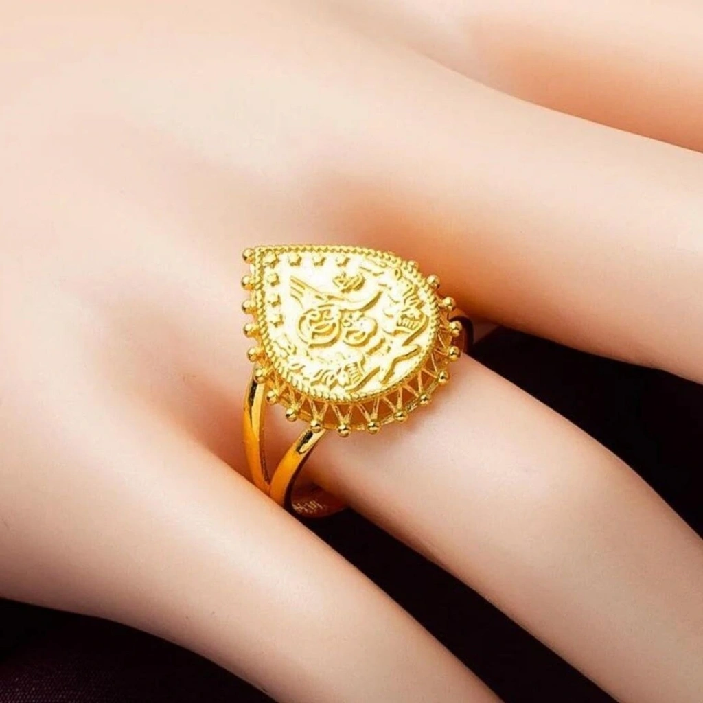 İki damla şeklindeki tasarımıyla öneçıkar ve çift damla detayları yüzüğe zarif bir görünüm katar. Yüzüğünüzerindeki tuğra motifi, Osmanlı İmparatorluğu'na ait antik bir sembol olantuğrayı temsil eder. Bu detay, yüzüğe tarihibir dokunuş ve özgünlük kazandırır.
