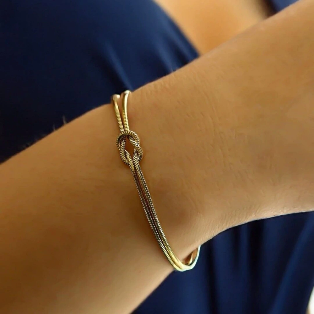 Altın Aşk Düğümü Bileklik : Sembol olarak düğüm detayı, aşk ve bağlılığı ifade eder.