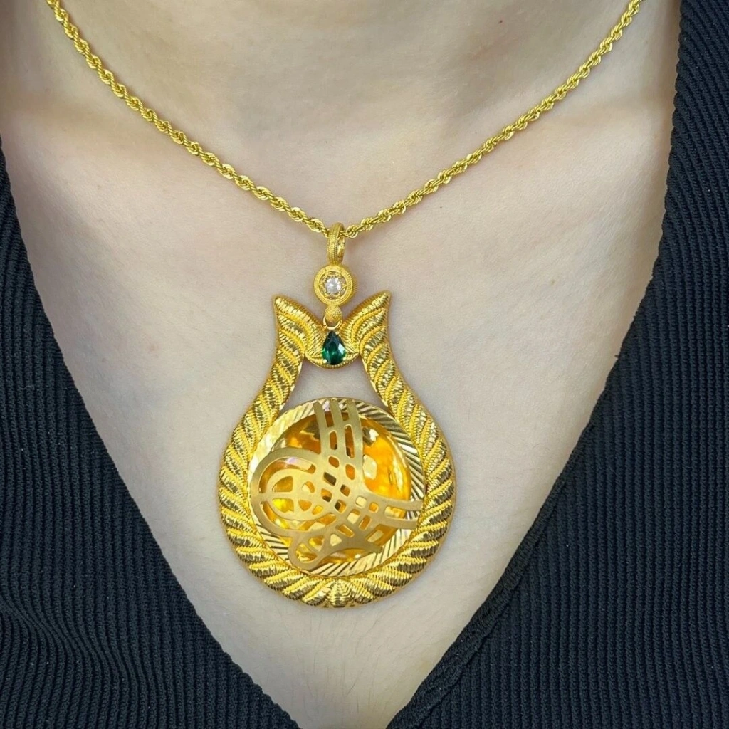 - Tasarım: Osmanlı tuğrası ve lale figürü, 14 ayar zincirle birleşen zarif tasarım