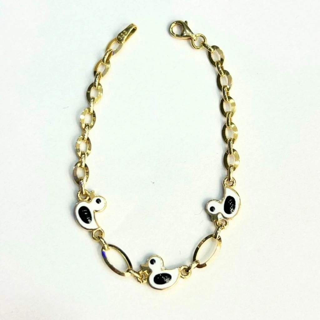 Bu 8 ayar altın ördek çocuk bilekliği, hem şık görünümü hem de dayanıklı yapısıyla çocuklar için harika bir hediye seçeneğidir.