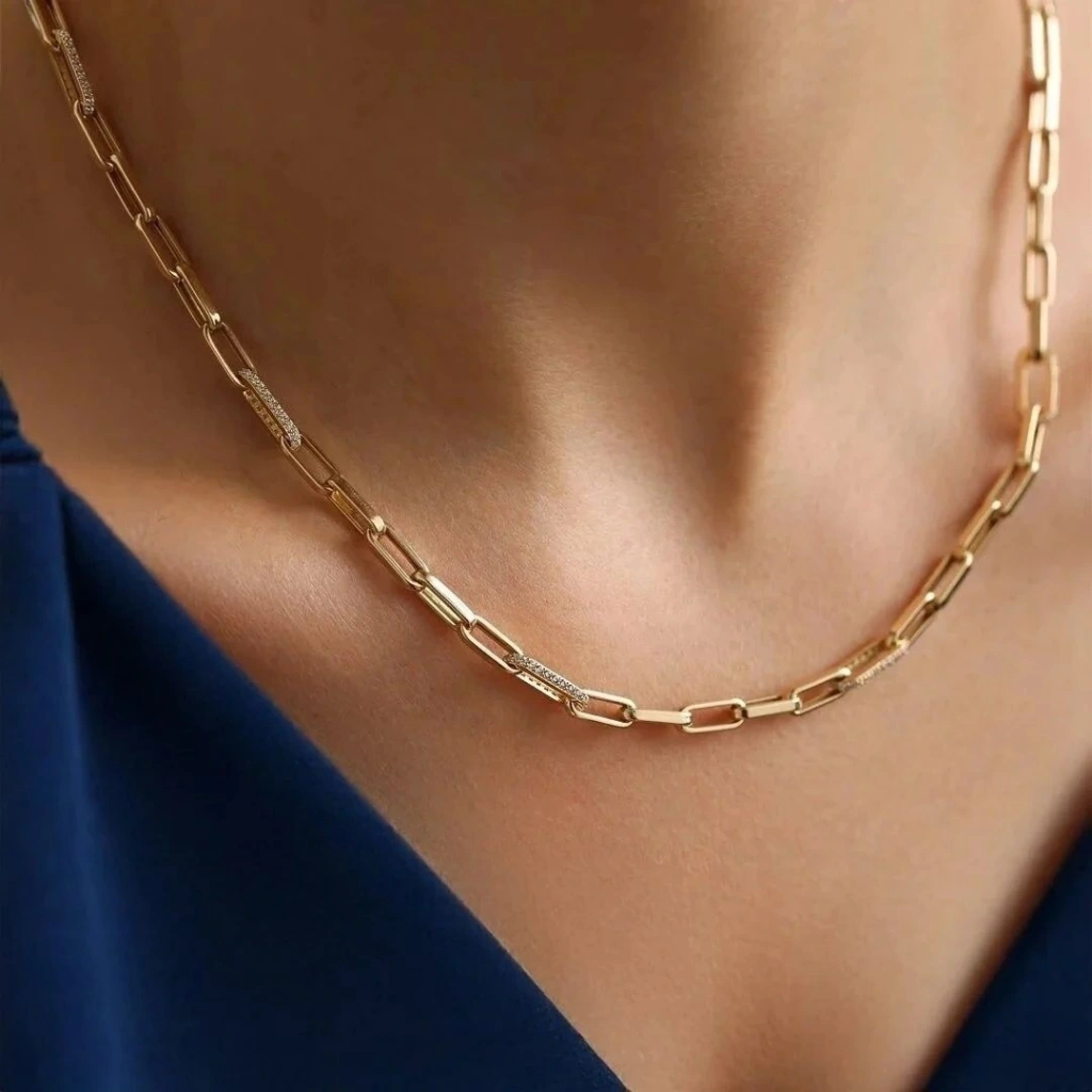 - Tasarım: Taş detaylı, zarif ataç zincir