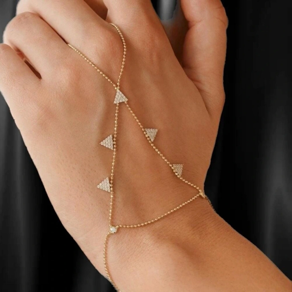14 Ayar Altın Çoklu Üçgen Şahmeran 3,54 Gram: Bu 14 Ayar Altın Çoklu Üçgen Şahmeran, Evla Kuyumculuk tarafından özenle tasarlanmıştır. Üretilmiş bir mücevherat ürünüdür. Kaliteli malzemeler ve dikkatli işçilikle yapılan bu bileklik, modern ve şık bir görünüme sahiptir. Bilekliğin yapımında 14 ayar altın kullanılmıştır. Toplamda 3,54 gram ağırlığındadır. Bilekliğin tasarımında çoklu üçgen motifleri ve şahmeran detayları bir araya getirilerek benzersiz bir estetik yakalanmıştır. Altın rengi, bilekliğe değer ve zarafet katar. Üçgen motifleri bilekliğe modern ve geometrik bir dokunuş sağlar.