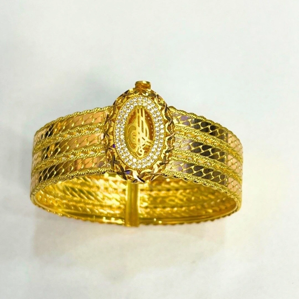 Bu 8 ayar sarı altın 3 sıra burmalı kelepçe, modern ve şık bir tasarıma sahiptir. Burmalı detaylarıyla zarif bir görünüm sunarak, her türlü kıyafetle uyum sağlar.