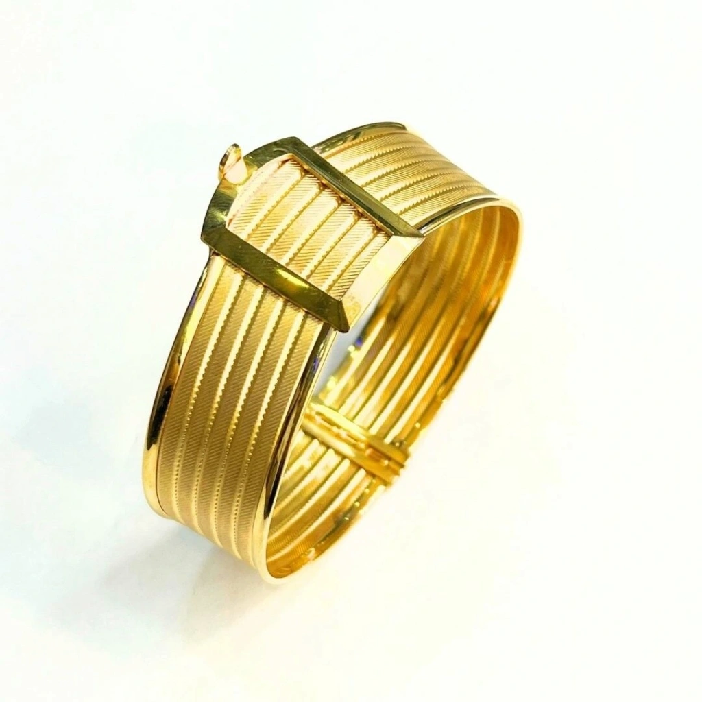 Bu 8 ayar sarı altın 7 sıra Trabzon kelepçe, zarif ve geleneksel bir tasarıma sahiptir. Trabzon motifleri, bilekliğe şıklık katarak, her türlü kıyafetle mükemmel uyum sağlar.